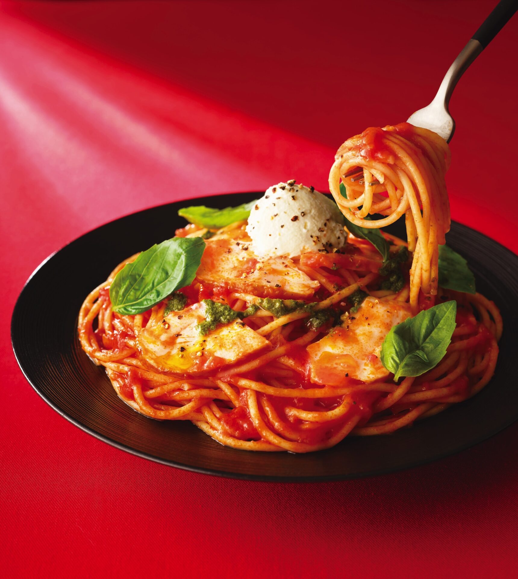 人気のトマトソースをはじめとしたパスタ、ドリアやカレーといったご飯ものは、店内で調理・仕込みを行ない、できたてを提供(メニューは季節により変動)。